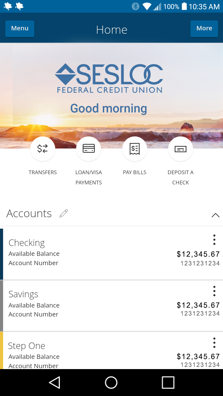 Beginning April 13, 2020, you’ll see a new and improved look to the home screen of the mobile app. Both Android and iOS users will see the refresh, which includes a welcome screen with a custom message, and quick links to the most frequently used banking features, including depositing a check. Members will not be asked to upgrade the mobile app in order to see the changes.